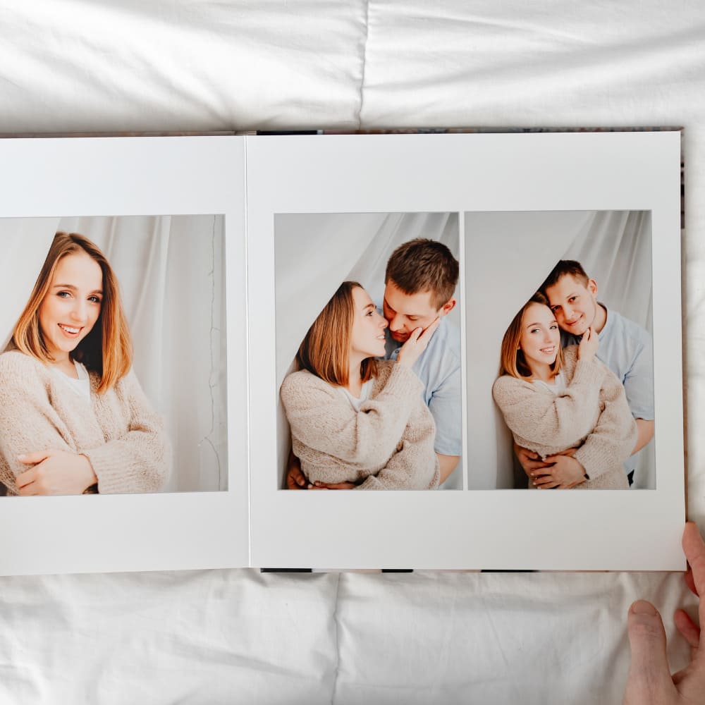 Het vierkante fotoboek charmeert met zijn elegante, moderne en veelzijdige stijl. Het compacte formaat maakt het gemakkelijk om creatieve albums te maken die prettig in de hand liggen en fijn zijn om door te bladeren, en die zowel staande als liggende foto’s perfect weergeven. Huwelijk, geboorte, reis of verjaardag — het past zich aan elke gelegenheid aan voor een uniek en verfijnd aandenken.